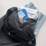 ▲Tシャツ、デニム、トラベルポーチ、財布、サングラス、ノート、ペンケース、コンデジがスッポリ収まりました