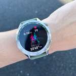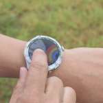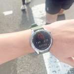 基本の画面は、上は「心拍数」、中左は「走行ペース」、右は「走行距離」、下は「タイム」に設定。画面外側のメーターと心拍数の色がリンクしているので、心拍数の状態が一目でわかる仕様になっています。