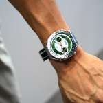 新色グリーンは、緑と白のダブルカラーのセラミックベゼルを採用するユニークなデザインを採用。ゴルフをモチーフとする文字盤もが初期設定されています。なお、従来のブルーとブラックの同梱ベルトは2本(チタニウムと水素化ニトリルゴム)ですが、新色にはコンポジットウーブンを加えた3本のベルトが同梱され、利用シーンによって付け替えられます。
