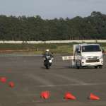 実際にテストコースで千鳥走行を試してみました。通常のACCでは、コーナリング中などに追従する対象が斜め前のバイクと正面にいるバイク(1台前のバイク)で切り替わってしまうことがありましたが、GRAを使うと斜め前のバイクに追従できます。ちょっとした違いではありますが、グループでツーリングをする機会が多いライダーには、快適性と安全性を高めてくれるはずです。