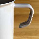 カールさせた部分は、内側に水が溜まったりするんですよ。とはいえフチを切りっぱなしにすると、ちゃんと処理しないと危ないし、口当たりが悪くなってしまう。処理だって大変です。だからカールさせるのは分かるんですが、水がねぇ…。でも、ホーローマグってそういうものだと思っていました。だからこのフチはちょっと驚き。