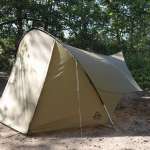 コンパクトなドームテントにでっかい前室を後付けする「neGla マエヒロシェルター」。愛着あるテントを2ルーム風にすればこれからの季節に大いに役立ちそう。