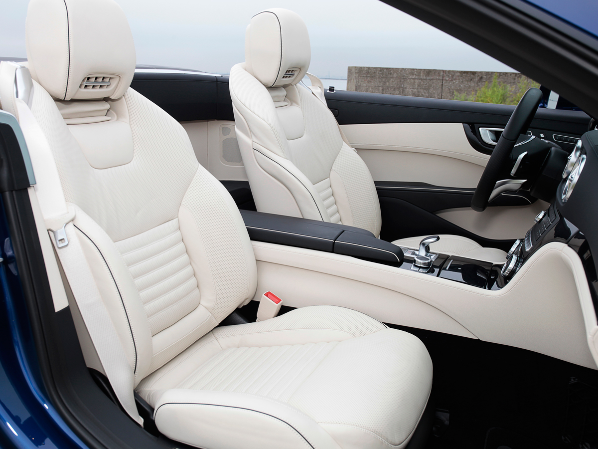 「スポーツカーは、軽量コンパクトをむねとすべし」という信念を守るスポーツカーピューリタンにとっては、いまひとつ納得しかねるSLのディメンションですが、そんな人が、贅沢なナパレザーの運転席に座ったら、さらに驚くことでしょう。