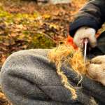 私も初めて火口に麻紐を使おうとした時は、コツもやり方もわからずやっていたので、手でほぐしたり、ナイフを動かしてみたり、1本30cmくらいの麻紐を20分くらいかけてほぐした記憶があります。そして火口にした麻紐にはなんとか着火できたものの、薪には着火せず、また20~30分かけて麻紐をほぐして、本当に苦労した思い出があります。