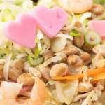▲ハート型のピンクのかまぼこに納豆、そしてエビやアサリ、野菜たっぷり。脂っこくないのもあり背徳感はかなり低め