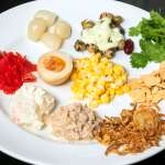 ▲無料トッピング10種。特に人気なのは1番の「味玉」、4番の「ポテトサラダ」、10番の「フライドオニオン」