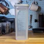 そもそもタッパー社のプラスチック製食品保存容器なんて、使ったことがなかったわけですが、さすがは元祖。食品保存容器と同じ構造で液体までOKだなんて、いかに密閉性が高いかが分かります。
