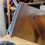 ▲我が家では無印良品「穀物ブレンド茶」のお茶パック2袋を入れっぱなしでの水出し。なので、ストレーナーがあるとパックが注ぎ口をふさがないので助かる。ちなみに空気抜き用の穴がないので、出てくるお茶は少々暴れがち