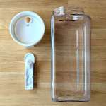 ちなみに耐熱温度は本体が100℃、フタ(シール)が80℃だからお湯も入れられます(ただし、熱い状態だとキャップが浮いてしまう可能性があるので、少し冷ましてからキャップすること)。もちろん食洗機もOKですが、低温コース(60℃前後)にしてくださいとのことです。