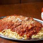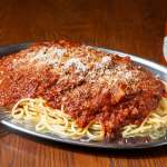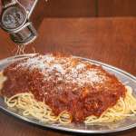 ▲じっくり煮込んだミートソースに、もちもちのスパゲティ。みんな大好きな馴染のある味