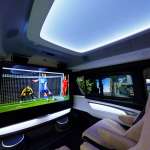 パナソニック・オートモーティブシステムズ「WELL Cabin GranLuxe」はキャビンにいる時間を楽しませるコンセプトで、55インチの透明有機ELをはじめ、6.1チャネルのスピーカーと、シート内蔵のエキサイター(振動子)装備。(写真:パナソニック・オートモーティブシステムズ)
