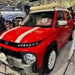 ショー会場で発表されたヒョンデのキュートなルックスのBEV「インスター」は日本の軽自動車なみのボディサイズながら広い室内とアレンジの多様性があるシートを備える(284万9000円~)。(写真:筆者)