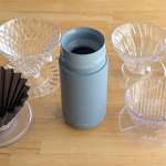 手持ちのドリッパーをいろいろ試してみましたが、メリタやカリタの1~2杯用台形ドリッパーやウェーブドリッパーは問題なし。残念ながら、キーコーヒーのクリスタルドリッパー、コーノの名門ドリッパー、ドリッパーホルダーを付けたORIGAMIドリッパーはダメでした。開口部の直径が実測約5cmなので、ドリッパー下部の出っ張りがそれ以下ならOKです。