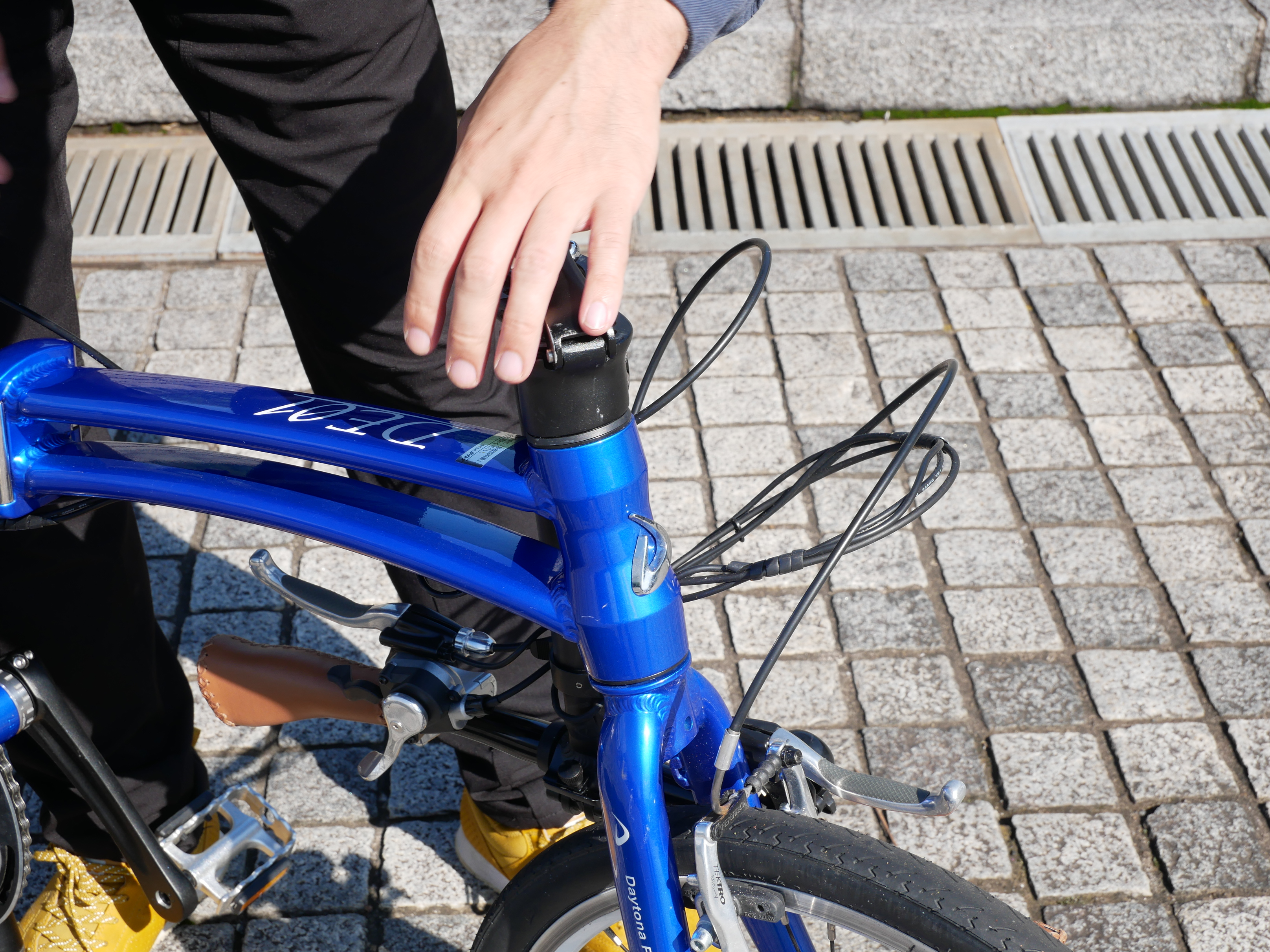 今回、乗ってみたのは「DE01S」という、ちょっと良いパーツの付いた上級モデル。価格は「DE01」の14万8000円に対して18万5000円と、やや高くなっていますが、変速ギアが7速から10速になっていたり、ホイールやクランク(ペダルにつながっている棒状のパーツ)がグレードの高いものになっていたりと、走りに関わる部分の性能が向上。カラーもメタリックになっていて高級感が増しています。