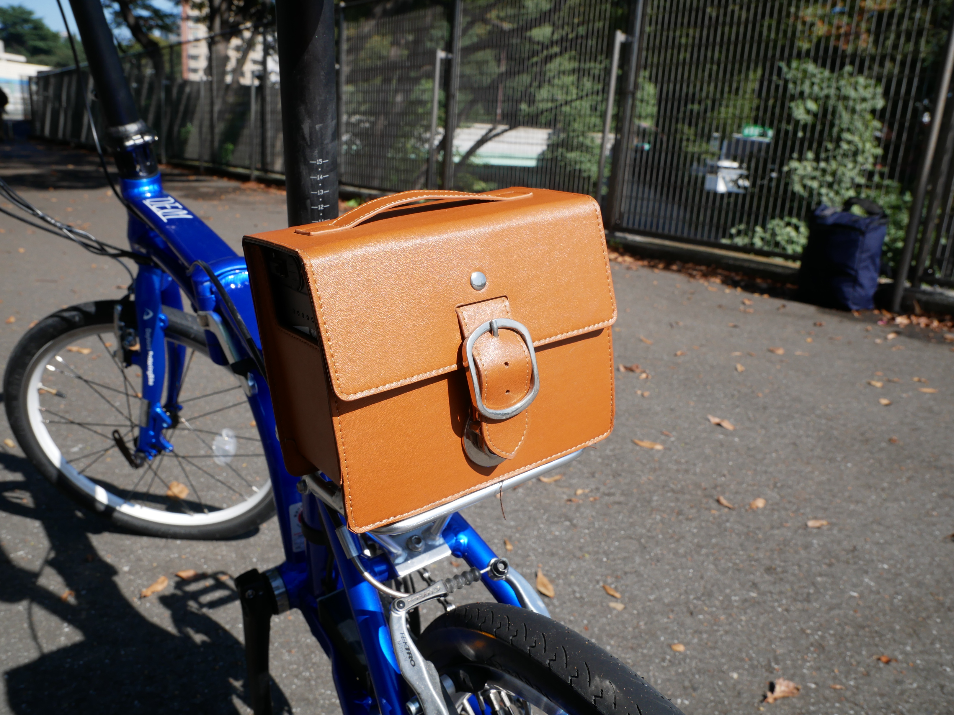 「DE01」シリーズが電動アシスト自転車に見えないスッキリしたデザインに仕上げっているポイントは、まずバッテリー。革のケースに収納された状態でシートの後ろに配置されているので、一見するとバッテリーには見えません。