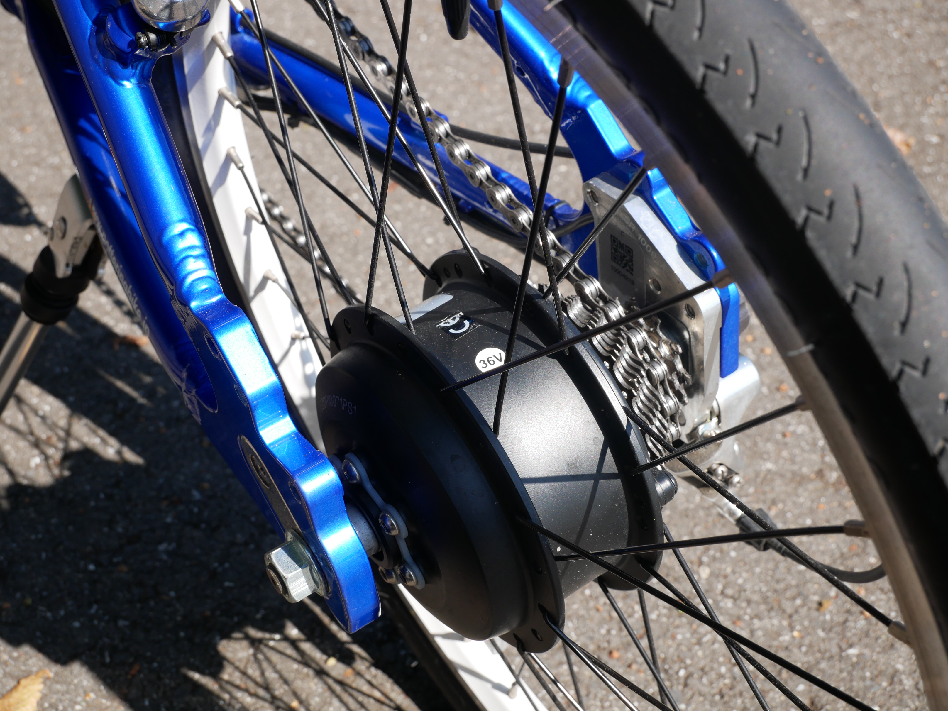 もう1つのポイントはモーター。後輪の軸(ハブ)と一体化されたものを採用しているので、こちらもパッと見では電動アシストとはわからない仕上がりです。