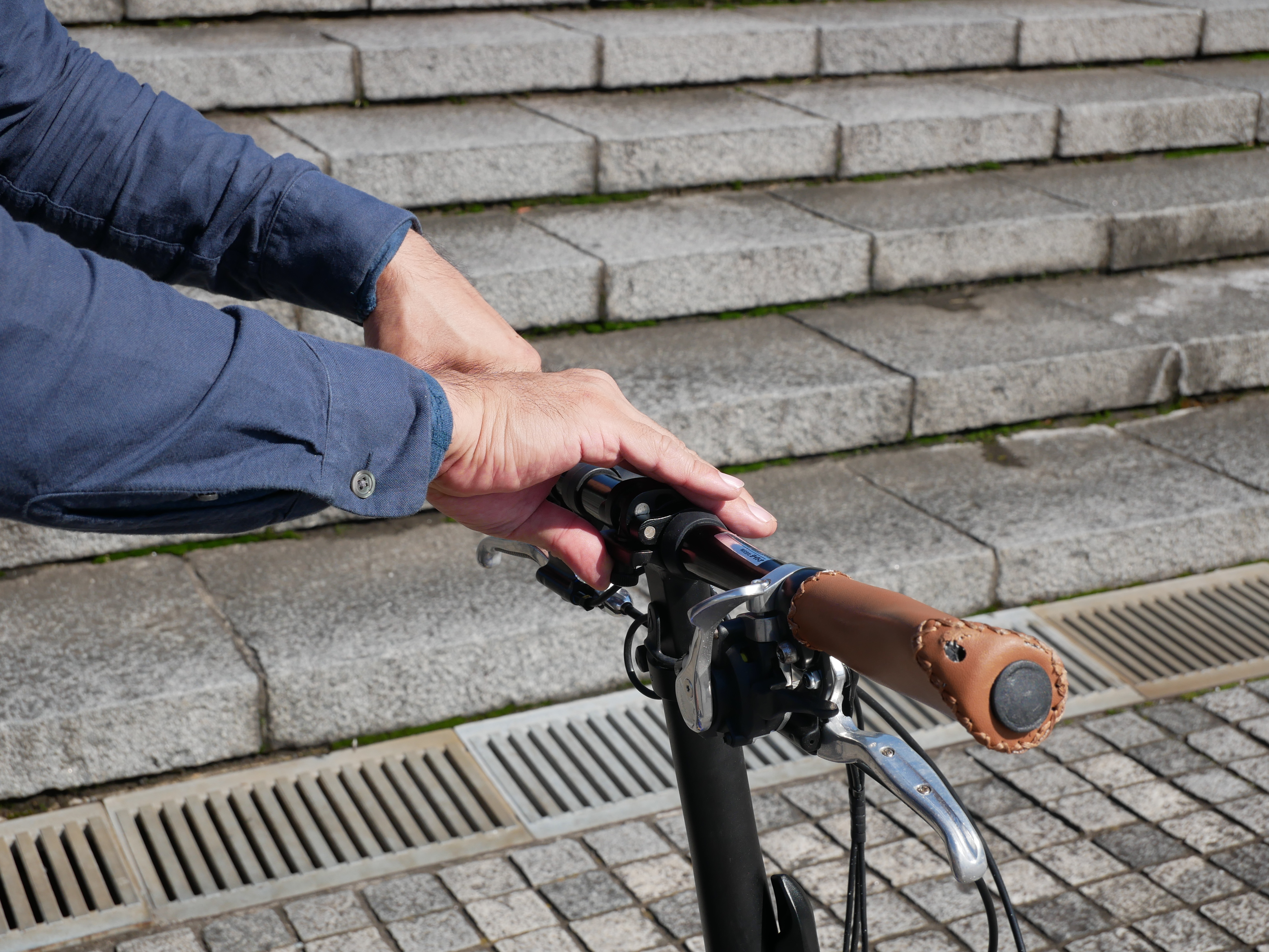 それでいて、モーターのトルクはママチャリタイプと同等なので、登り坂などではしっかりとアシストしてくれます。軽い力でクルクルとペダルを回していればいつの間にか坂道を登り切っている感覚。ペダルがアシストのスイッチになっているような感触がないので、自分の足がパワーアップしているようで、とても気持ちいい。