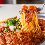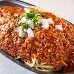 ▲ひき肉たっぷりトロトロのソースがスパゲティにしっかり絡む