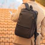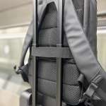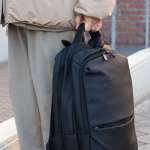 また、オールブラックのミニマルなデザインは、スーツスタイルにもビジネスカジュアルにも違和感なく馴染み、シーンを問わず活躍するのが魅力。さらに、素材には軽量なポリエステルを使用しており、長時間の移動や出張でも負担が少なく、快適に持ち運べるのもポイントです。