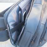 PCスリーブには、パソコンの飛び出しを防ぐ固定ベルトを装備。このベルトのおかげで、バッグを横持ちにしてもパソコンが滑り落ちる心配がありません。ブリーフケースとして使用するシーンもしっかり想定された、細やかな工夫が光ります。