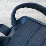 バッグの上部には、しっかりとした太めのハンドルを装備。電車内などでリュックを手持ちにする際に便利です。最近では、満員電車での“前抱えスタイル”よりも、リュックを手持ちする方がスマートという風潮も広がりつつあり、このハンドルがあることで自然にマナーを守れるのも魅力。