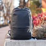 まずはデザインからチェック。近年のビジネスリュックの主流であるスクエア型フォルムを採用し、シンプルながら洗練された印象を与えます。