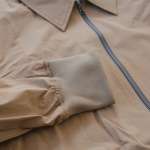その「コンビニエンスウェア」から登場したのが「ジップアップジャケット」(3990円)。シンプルながら、袖にギャザーを入れることでファッション性をプラス。シャカシャカ系の素材だが、ゴワつきはなく、サラッと羽織れる軽やかさが特徴だ。