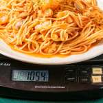 目の前にやってきたのはブッフェやパーティに出てくるような大皿に盛られたいい香りのスパゲティ。まずは計測です。