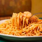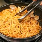 ▲エビやイカ、アサリが程良くパスタと絡んで持ち上がる。パスタ麺はモチモチ