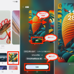 ▲(左)ロック画面からの操作手順としては、何もないところを長押しして左上の「壁紙」をタップ。(中)「AIで生成」をタップ。(右)「ホーム画面とロック画面」を選択