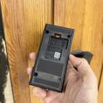 設置については先に紹介した通り、玄関ドアに貼るだけ。地面から1.2m程度の高さが最適な設置位置で、これは一般的なドアノブの位置(1m前後)より若干高い程度ですね。なお「玄関ではなく家の門に付けたい」という場合にはネジ固定必須のこと。Wi-Fi電波が安定して届くかをよく確認しましょう。