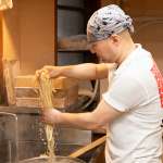 ▲大きな釜でうどんを茹でる。「オープンキッチンで調理過程が見えることにより、お客様に安心してお召し上がりいただいています」(店長)