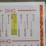 「おつまみレバ−」(500円)や「焼き餃子五個」(500円)などを食べて飲んで、「チャーハン」や「中華そば」などで締めるのもいいなぁ。
