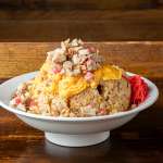 ■ふわふわ玉子の上にゴロゴロとしたチャーシュー! 「チャーハン大盛り・オムとチャーシュートッピング」910g!