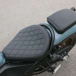 まずハンドル形状は、前モデルより幅を17.8mm短縮。手前方向へのベンドも1°ずつ増やされ、グリップエンドは6.5mmライダー側に近づいています。ハンドルの高さも5.6mm上がっていて、数値上はわずかな変化ですが長距離ツーリングなどで疲れが少なそう。それでいて、クルーザー的なポジションは維持されています。