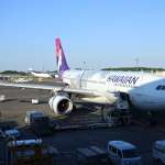 3日間の滞在を経て、復路はホノルル市内を9時に出発し、さくっと10時前に空港へ。HA821便、ダニエル・K・イノウエ空港12時15分発で成田へと帰ります。使用機材は復路と同様、機体の名前はHeiheionakeiki(オリオン座)。ハワイ伝統航海術で重要とされる星々の名前がつけられた機体に往路・復路ともに乗れるのは、なんとも冒険心がくすぐられますよね。