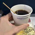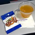 クッキー片手に味わうのは、もちろんハワイコーヒーカンパニー謹製の「ライオン・コーヒー」です。ハワイアン航空特製ブレンドは、コクがありつつもすっきりとした味わい。高度の高い場所でも香りと風味がしっかり楽しめる1杯でした。