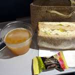 日本到着1時間30前には軽い2回目の食事「チキンサラダサンドイッチ、AlohaMacs」。
