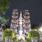 ▲ライトアップされた夜の大教会。夜景モードなども使わず手持ちで撮影。ISO1600で絞りは開放のF3.3、シャッタースピードは1/10だからブレちゃいました…