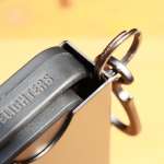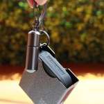 ステンレスのケースに樹脂製内箱を差し込むとカラビナ用のリングが干渉するように思えますが、内箱の底部分は少しくぼんでいるのでストレスなし。見事。