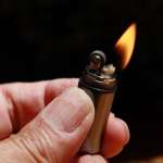 ヤスリを回転させると火花が飛び、芯に炎がつきます。消火機能はないので、キャップを被せるか息を吹きつけて消火。発火石(一般的なモノ)は交換できるし、ガスのライターよりも確実に点火できるので、お守り代わりにもってこい。