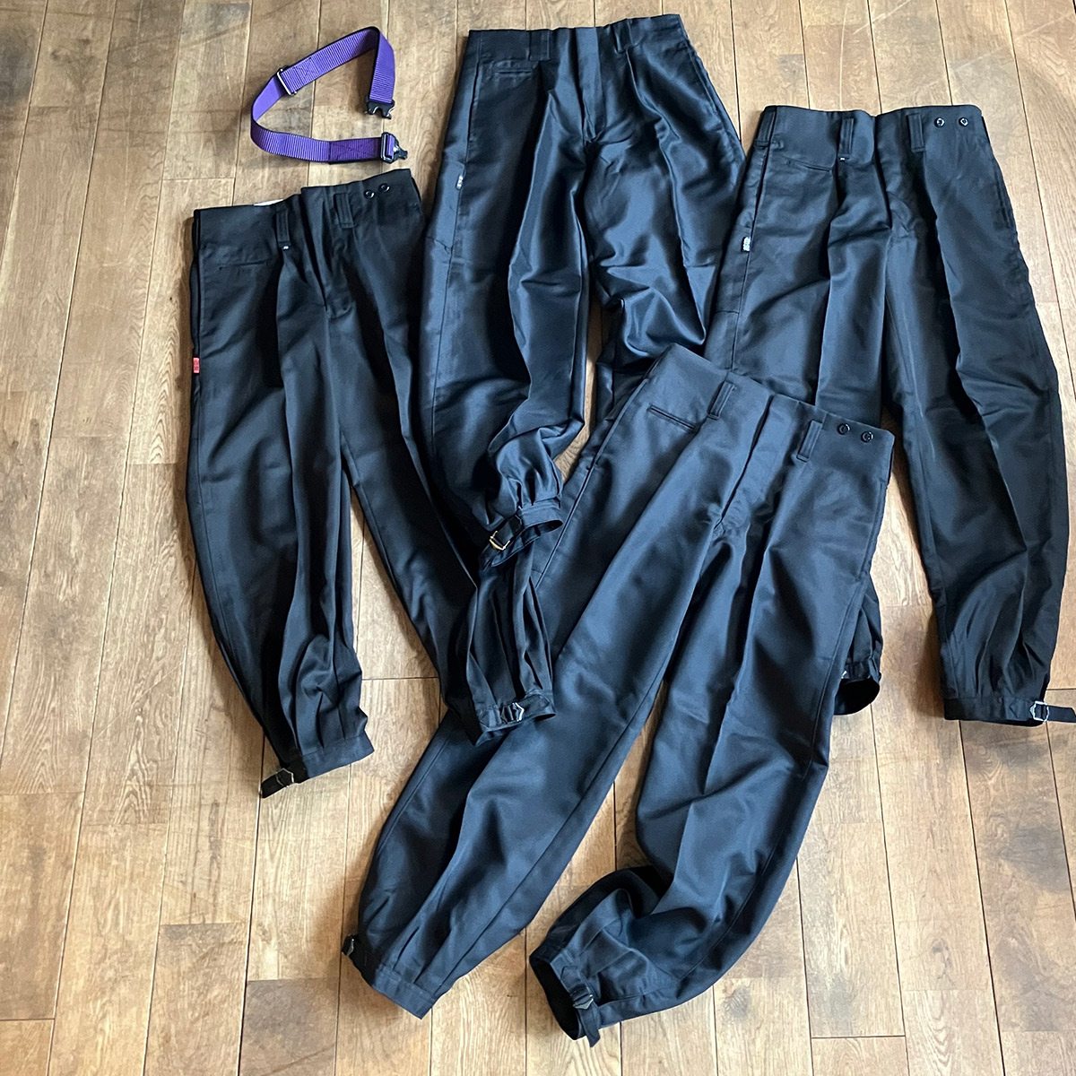 そしてパンツの裾部分は尾錠付き。本来の使い方ではないでしょうが、ファッション的にはシルエットを変化させられるので遊びが利いていて良いなと(どうやら本来は絞って作業靴や足袋にインしやすいようにしているみたいですね)。