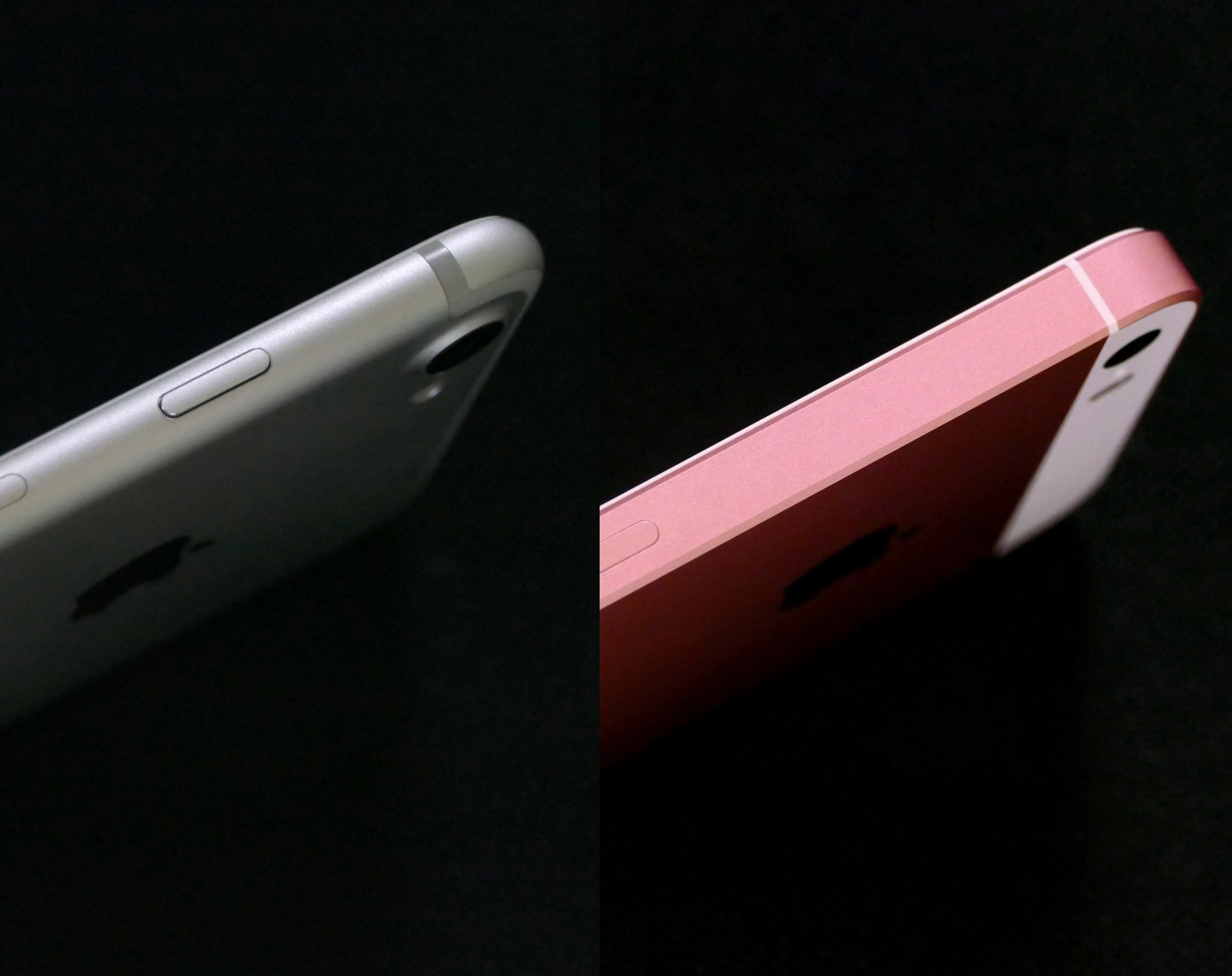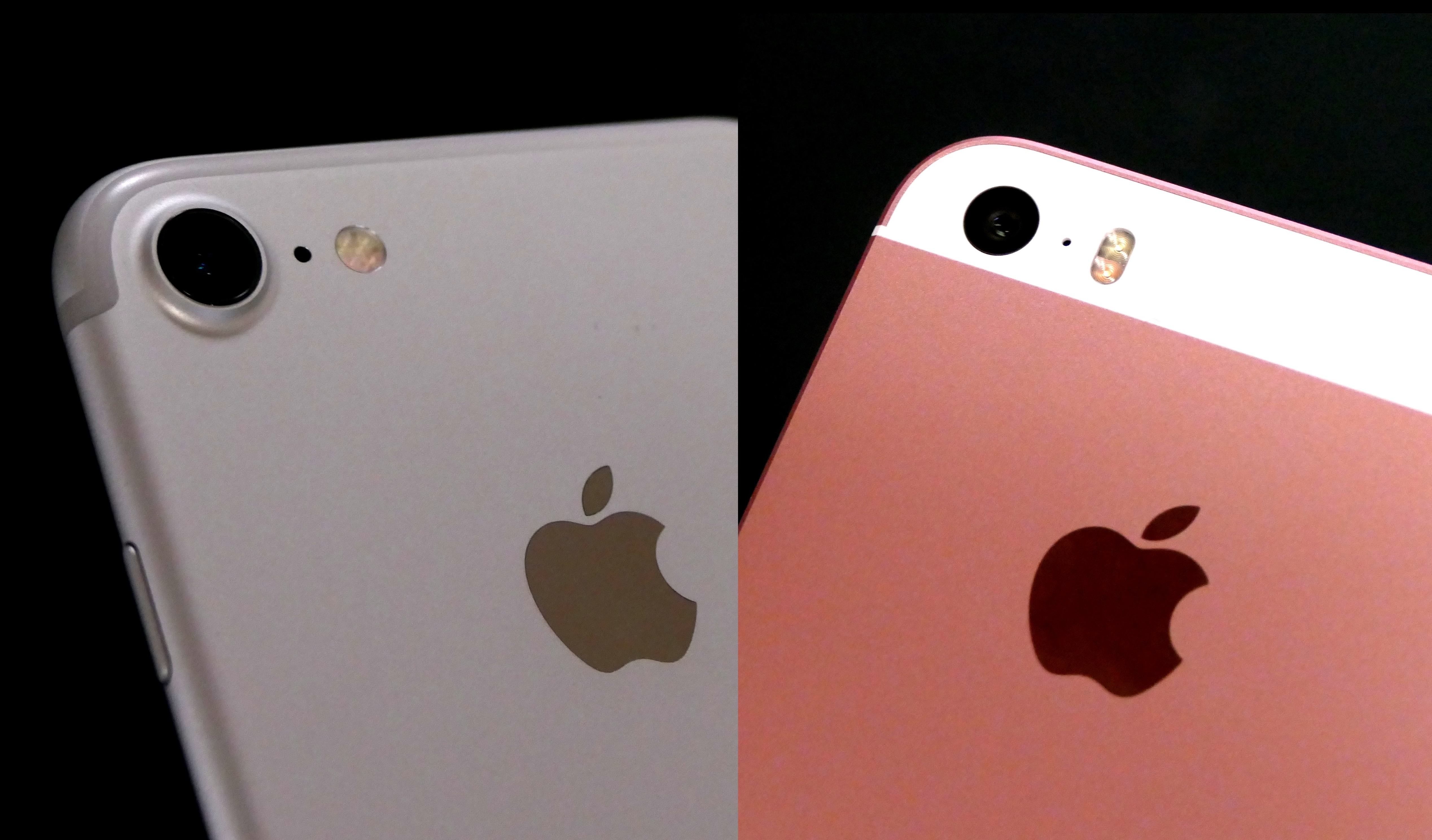 iPhone 7のカメラはiPhone SEのものと比べて一回り大きめ。形状も異なります。