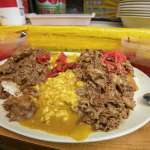 ひとつの皿で味に変化があるから、他のデカ盛りカレーに比べて食べ飽きないし、辛さに強くない人でもガンガン行ける。しかも、牛肉も豚肉も薄切り肉だから、ほぼ噛まなくてオッケー。ちょっとだけ“飲めるカレー”感覚です。