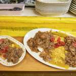 ▲重さ2316g。豚肉側には福神漬けが、牛肉の山には紅生姜がのっている