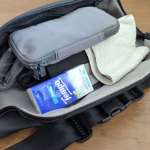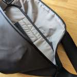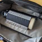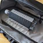 ボトルを入れて持ち歩いてみましたが、中でボトルが動くことも下側に寄ることもありませんでした。見た目も、いかにも重いものが入っていますというカタチにならないし、何よりそこまで重量増を感じない。固定するって大事ね。