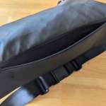 表側にファスナー付きのメッシュポケットがひとつ付いているだけです。ここまで潔い構造のボディバッグも珍しい。とにかくパーツ少なめ。