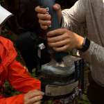 出発から約1時間後、そろそろ喉が渇いたなという頃に、沢で「ビーフリーAC」体験スタート。