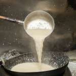 ▲平たい網に乗せた背脂を全部どんぶりの中に。チャッチャどころじゃない量!