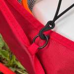 工夫はポケット状の座面だけではありません。長物なんかはポケット部分に挿しても引っ張っている間にずれ、横からこぼれ落ちてしまいますが、付属のフック付きラバーバンドをチェアのリングに引っかければ、荷物の飛び出しを防止できます。